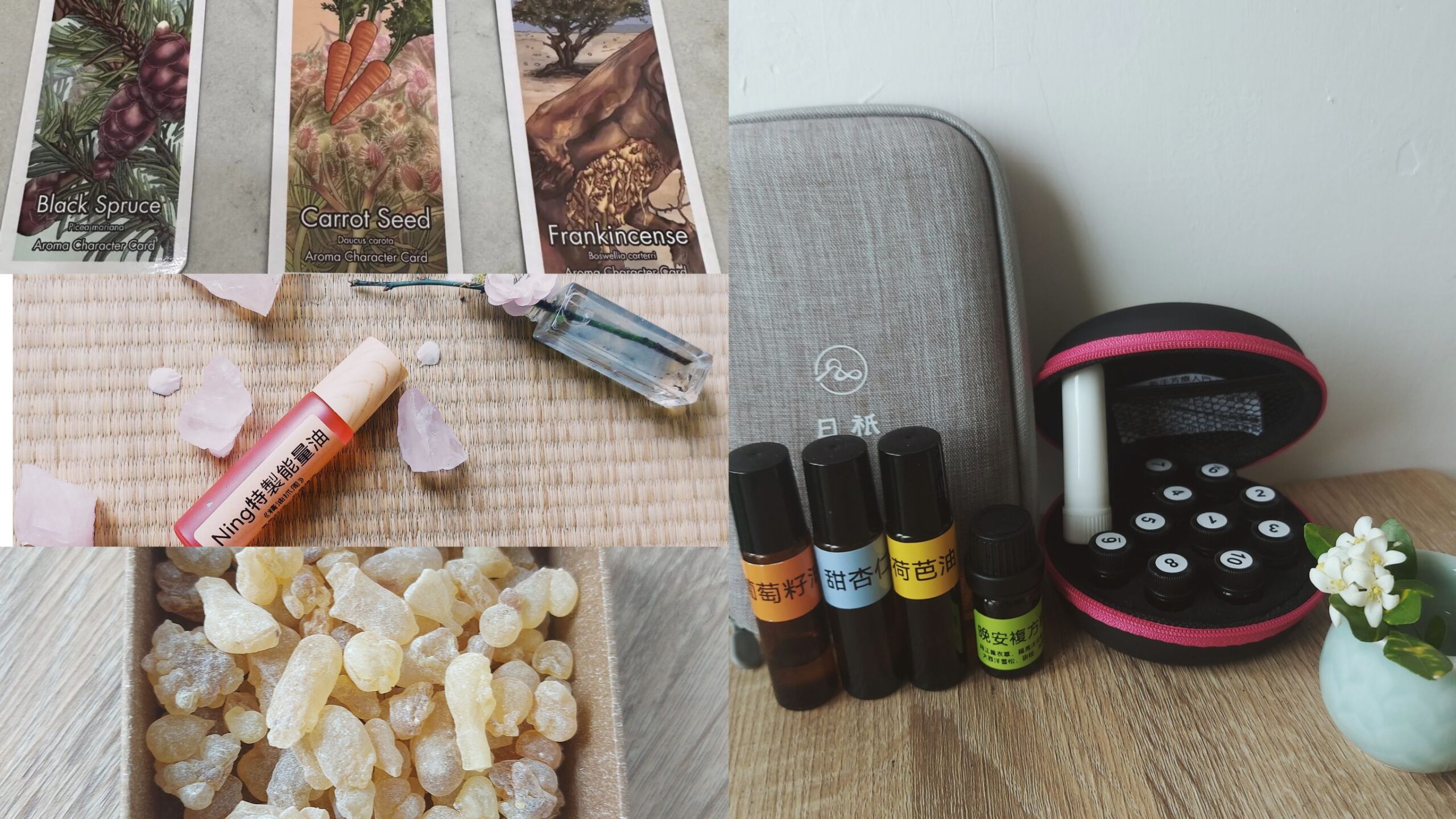 感謝一路陪伴我的是乳香寶寶,從郁文幫我摸香,到我自己摸香,還有每堂課手作的調油,我都有加入乳香,對我來說他是一個安定的味道。